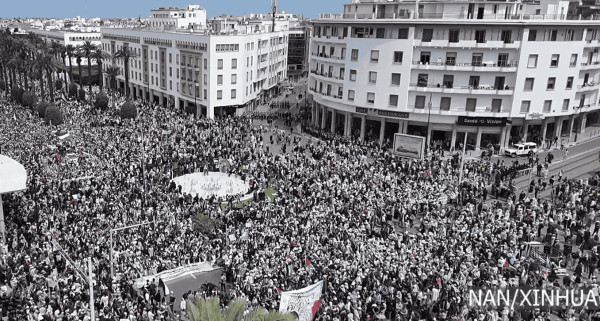 गाजामा इजरायली आक्रमण विरूद्ध मोरक्कोको राजधानीमा प्रदर्शन